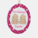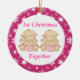 Wonderful First Christmas Together baby ornament has pink diapered girl twin babies with "1st Christmas Together" quote on snowflake background. A beautiful keepsake gift for a twin baby shower or a stocking stuffer for the parents of twins.