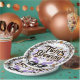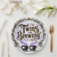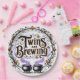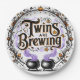 Celebrate the magical arrival of twins with this charming “Twins Are Brewing” baby shower plate. Featuring two black cauldrons with whimsical purple smoke, framed by pumpkins, vines, and golden floral accents, this vintage-inspired Halloween design is both festive and elegant. Perfect for a fall or Halloween-themed twin baby shower, these plates add a fun and unique touch to your party table. A wonderful way to combine seasonal charm with the excitement of welcoming two little ones.
