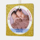 This is a lovely ornament, and great that you personalise the back with details of birthday, weight, etc.. My only tiny disappointment is the "My First" doesn't stand out very well on the background. More than happy with the printing of the photo and the writing on the back.