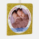 This is a lovely ornament, and great that you personalise the back with details of birthday, weight, etc.. My only tiny disappointment is the "My First" doesn't stand out very well on the background. More than happy with the printing of the photo and the writing on the back.