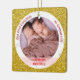 This is a lovely ornament, and great that you personalise the back with details of birthday, weight, etc.. My only tiny disappointment is the "My First" doesn't stand out very well on the background. More than happy with the printing of the photo and the writing on the back.