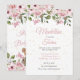 A floral bunch of pink flowers is the basis of this chic twins baby shower invitation.