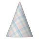 These party hats feature a timeless teddy bear design with pink and blue plaid accents, perfect for a coordinated twins Beary First birthday celebration.