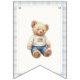 This Happy Birthday bunting banner features a classic teddy bear design with pink and blue plaid details, created for a timeless twins Beary First birthday celebration.