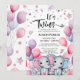 It's Twins ! Boy and Girl Elephants Watercolor Pink Blue Balloons Cute Baby Shower Invitation Card. Celebrate the upcoming arrival of your precious baby with this festive, chic and beautiful Invitation card featuring colourful watercolor balloons, festive gold glittering stars and hearts, pretty gift sets wrapped with ribbons and floral decorated mails . All the texts are pre-arranged for you to personalise easily and quickly with your baby shower details.