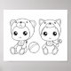 Twins Cat Bear Baby Jumpsuit Colouring Page Poster