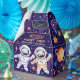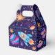 These outer space birthday first trip around the sun favour boxes feature two friendly astronauts surrounded by galaxies, planets, rockets, comets and lots of stars on a dark purple background. The text reads 'Jayden & Tyler's First Trip Around the Sun' and are ideal for a baby twin boy's first birthday. You can modify all the text to suit your event. See the whole matching collection.