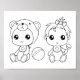 Twins Girl Bear Baby Jumpsuit Colouring Page Poster