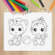 Twins Girl Bear Baby Jumpsuit Colouring Page Rubber Stamp
