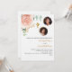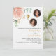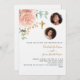 For the confirmation of 2 girls, sisters. A white background decorated with eucalyptus greenery and golden leaves and a rose gold flower. Personalise and the girls names, photos and ceremony details. Black and golden coloured letters.