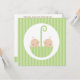 Stylish baby shower invitations featuring an adorable illustration of two babies inside an umbrella on a stripes background. Perfect design for your twins baby shower. Art © Cocoa Studio