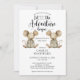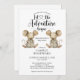 Let the adventure begin whimsical twins baby shower invitation, featuring gender neutral baby elephants illustration. Calligraphy script typography.