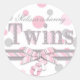 Twins Pink & Grey Polka Dots Baby Shower Classic Round Sticker