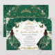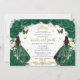 Twins Quinceañera Princesses Emerald Green Floral Invitation