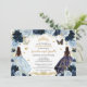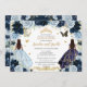 Twins Quinceañera Princesses Navy Baby Blue Floral Invitation
