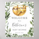Welcome your baby shower guests with twins sloth welcome sign, featuring watercolor greenery eucalyptus garland. Personalise with your baby shower details in simple and modern layout and elegant handwritten style font.