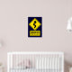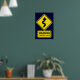 Warning - Twisted Logic - dark blue poster with a yellow and black curve warning sign style design.