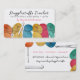 Hand drawn twisted yarn hank or skein of yarn in bright colours with crochet hooks on business cards or l 'handmade with love' gift tags, product tags or hang tags for crocheted or yarn crafts.