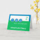 Employee anniversary card in blue and green. The blue letters in the three circles spell the year two, with the numeral two in green in the corner. Customise with your business name at the bottom. Subtle stripes in blue add a bit of depth to the green.