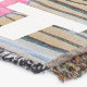 A quality printed throw has its advantages. This is a much finer weave throw than its loopier cousins, and though lighter, it is worth the investment for custom room accessorizing. The back is much prettier than the typical brown, and the fringe on the long sides very vivid, the selvage nicely done. Before photographing, I washed the throw in cold water, delicate, with a thicker woven throw the same size. On tumble dry low, this throw was dry in half the time as the other. This is a very practical quality if you use throws for furniture covers or to wrap up in frequently. The sleekness of the fabric makes it a great layer for accenting or protecting without the feeling of sitting on too much stuff. Perfect for napping or when you feel a light chill coming on. The color printing is beautiful and on this fabric, matched the design and color of my Photoshop image. This is an advantage for blending room fabrics and colors. The fringe on the short sides prints the colors from the design image and therefore varies from the side fringe. I streaked a white fractal line through the plaid pattern to give the illusion of weaving. This printed as crisp as an illusory thread, and put some white in the short side fringe, showing another advantage of print vs loomed- for artistic purposes, line lines, detail, and color integrity can be planned and preserved. My loomed throws have color limitations and more of a needlepoint texture. Print throws reproduce an exact image. The throw felt a little stiff straight out of the package, but this went away in the first delicate wash. Of course I searched the wash water for ink or bleeding and there was none.