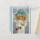 This postcard features a vintage illustration of two angels, a cross and purple flowers.
