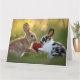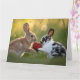 Two Baby Rabbits Sharing a Large Ripe Strawberry Card