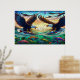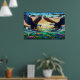 Two Bald Eagles Catching Fish Over a Vibrant River Poster
