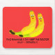 Two digitally designed cute banana cartoon characters with the words "Two bananas a day keep the doctor away - definitely!". The colour of the background can be easily customised, as well as the wording.