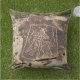 Two birds beneath a Terraced Mountain Petroglyph Cushion