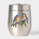 A beautiful, colourful bird image on the front and back of this stainless steel wine tumbler.