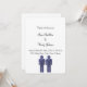A simple white wedding invitation with two blue glitter figures of men on the bottom of the card. This invitation reads, "Together with their parents NAME & NAME invite you to celebrate their wedding on DATE at TIME, LOCATION"