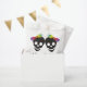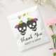Two skull brides and confetti in rainbow colours Halloween lesbian wedding Thank You favour bag. This wedding design features the skulls of two brides with bows in rainbow colours and colourful confetti around it.