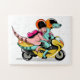Two Cartoon Raptors Riding A Motor Scooter. Jigsaw Puzzle