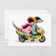 Two Cartoon Raptors Riding A Motor Scooter. Postcard