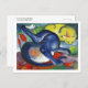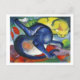 A fine art postcard with the painting, Two Cats, Blue and Yellow (1912) by the German Expressionist artist Franz Marc (1880-1916). An abstract portrayal of a bright blue cat and yellow cat napping. Marc used primary colours in most of his paintings.