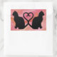 Two Cats Heart Tails on Pink Marble Rectangular Sticker