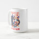 Two adorably designed cats, one black and one orange, are depicted surrounded by vibrant patterns and hearts, evoking a sense of warmth and affection. On this Christmas coffee cup mug.