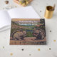 This guestbook for your events and parties has two chipmunks sitting on a tree stump with a view of pretty mountains with trees and a lake behind them. Customise your names and date with the template.