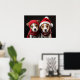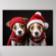 A digital rendering of a full body portrait of two puppies wearing a Christmas-inspired costume, cute and festive.