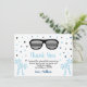 This adorable thank you card features sunglasses, palm trees and confetti.