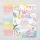 Celebrate your childs special day with this vibrant "Two Cool- pool party birthday invitation! Featuring playful summer illustrations like rainbows, flamingo floats, ice cream cones, popsicles, and tropical palm leaves, this design sets the perfect tone for a fun-filled celebration. Bright colors and festive details make it ideal for a second birthday party by the pool. Personalize with your event details to create a unique, eye-catching invitation that guests will love. Perfect for summer birthdays, tropical themes, and poolside gatherings.