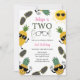 Two Cool Sunglass baby girl 2nd Birthday Invitation with cool fruits and sun