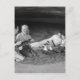 Two couples on beach sitting around campfire postcard