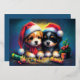 Two Cute Puppies in Santa Hats. Holiday themed items designed by Umua. Printed and shipped by Zazzle or their affiliates.