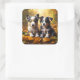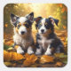 Two Cute Puppies Playing in Fall Leaves Square Sticker