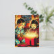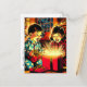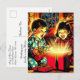 A sweet illustration of two Asian kids opening gifts on Christmas done in a comic book pop art style. Pretty festive holiday personalised Christmas postcard.