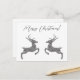 Destei's digitally created jumping deer shapes in faux silver grey glitter texture. The two deer are facing each other and there is a personalizable text area that now reads: "Merry Christmas!". PLEASE NOTICE: The design is a digitally created image that will be printed on the product.