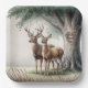 A buck and a doe deer stand gracefully beside an old tree with a heart and names carved into its trunk.