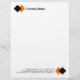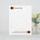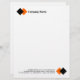 A Business letterhead template design with a two tone double square or diamond shape decorative motif placed in the top left corner 1/2inch from the paper's edges and also in the bottom right corner where the motif is flipped so the tones are reversed. Company Name aligned next to the top motif with email, web, address and telephone details aligned next to the bottom motif. This simple but attractive professional design can be customised in many ways.