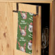 This festive kitchen towel is perfect for all the dog lovers in your life! Featuring adorable photos of dogs wearing reindeer antlers and Santa hats against a green background, this cute towel is sure to bring a smile to everyone's face. The photos may also be changed to photos of your own pups or those of your recipient! Editable text says Merry Pup-mas and Happy Paw-lidays.